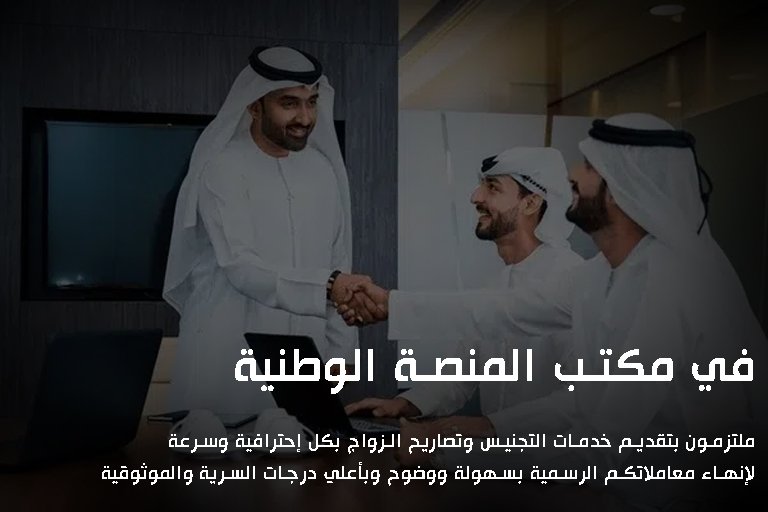 مكتب المنصة الوطنية يقدم لك خدمات التجنيس وتصاريح الزواج بكل احترافية، وبدون تأخير، مع متابعة مستمرة لحين إنهاء الإجراء بالكامل.